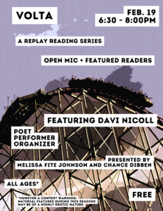 VOLTA (A Replay Reading Series) FEATURING DAVI NICOLL / 6:60P